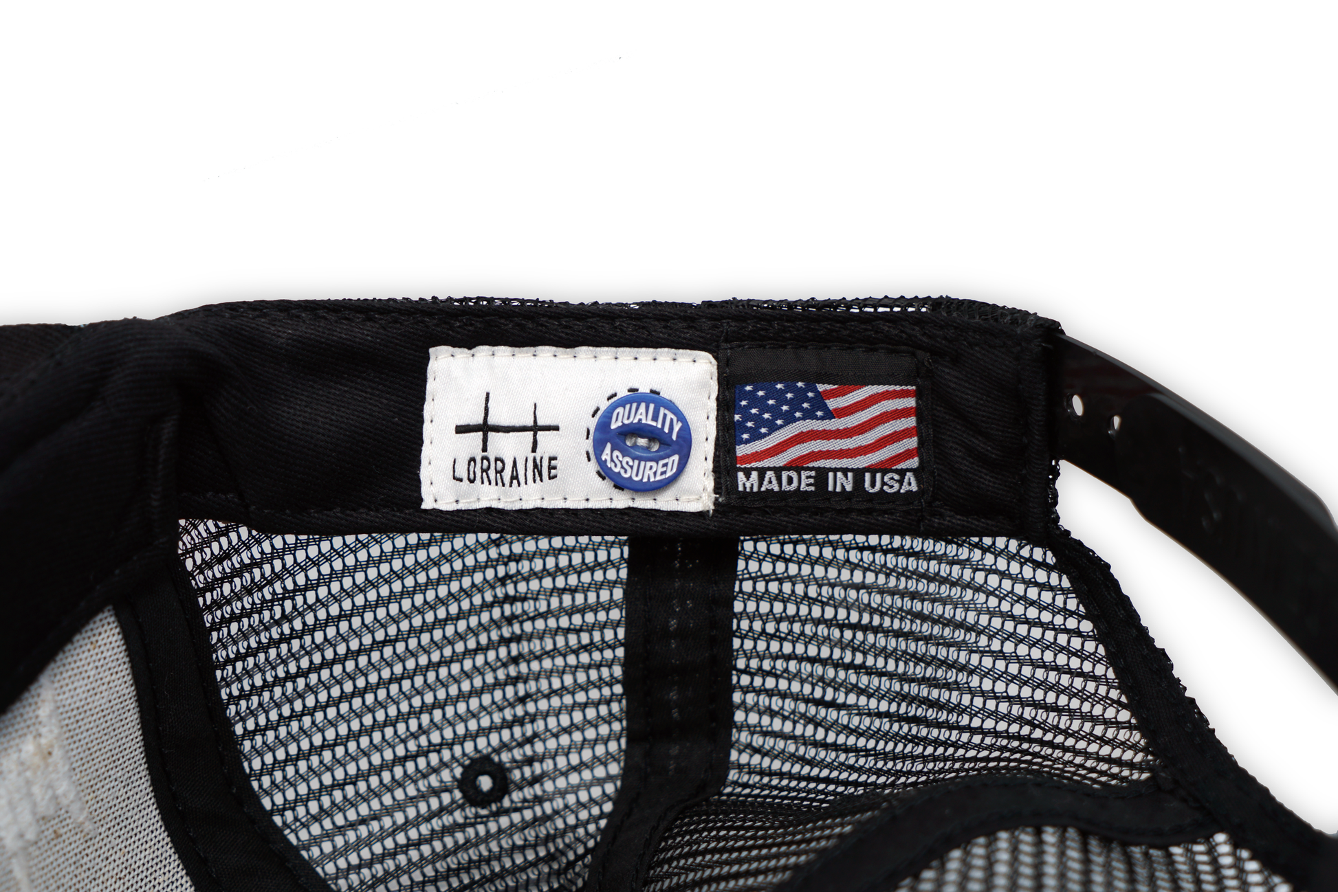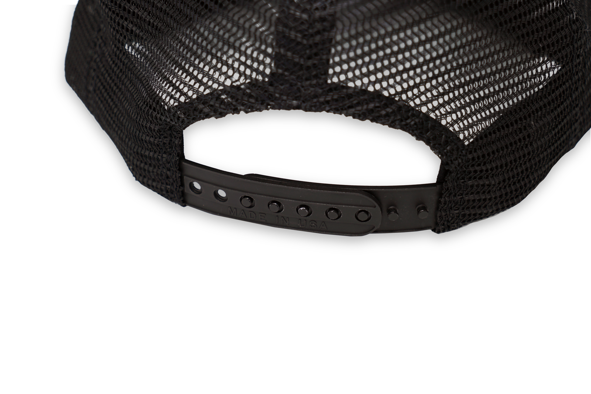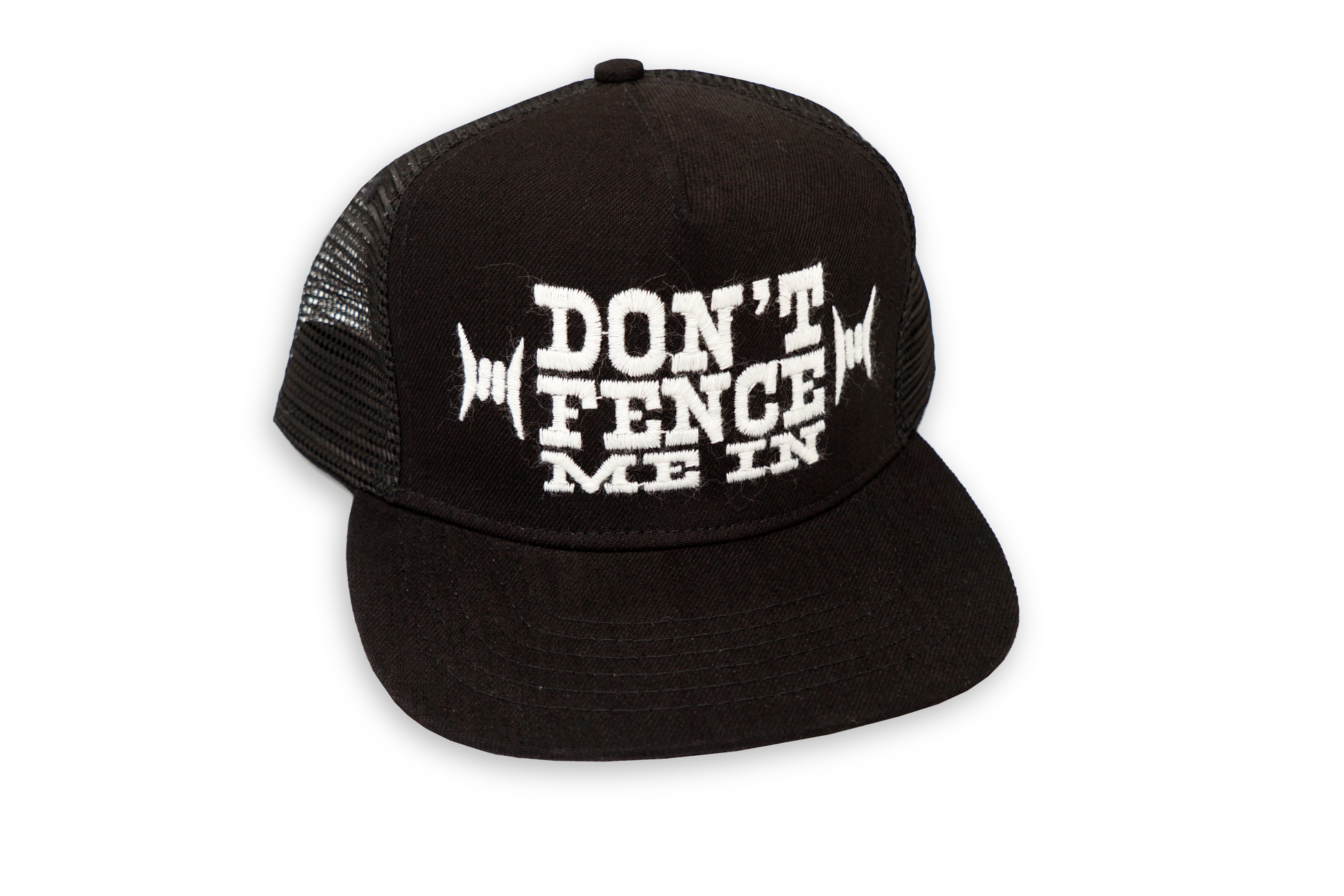 Custom made trucker cap in a black Cone Mills twill. Features an old-style, wool blend embroidery graphic. “You’re not defined by your appearance, don’t get fenced in.”